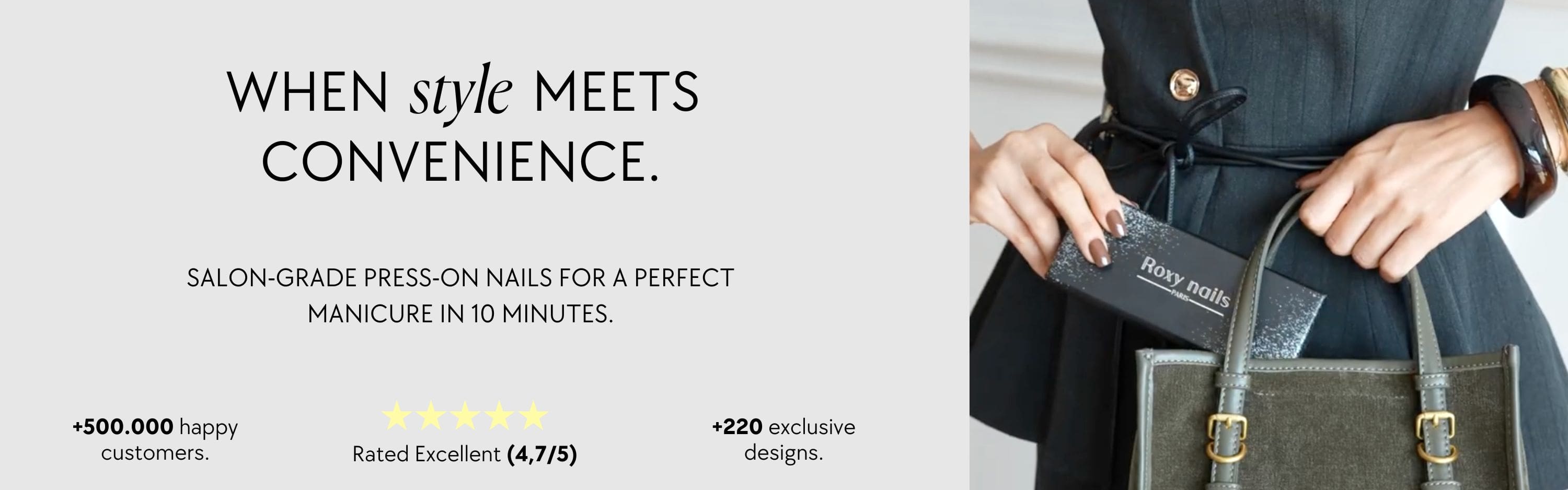 With Roxy Nails Paris press-on nails, you can get a salon-quality manicure at home in just 10 minutes.