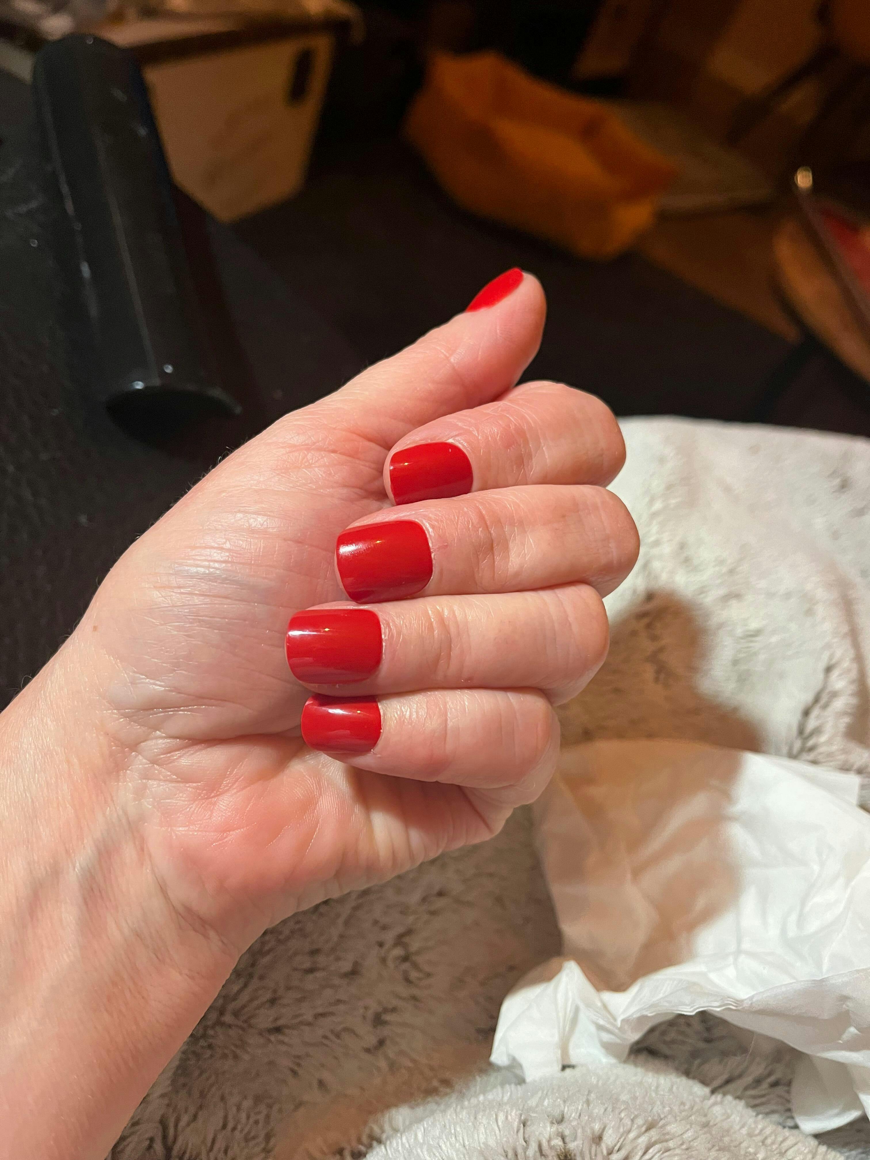 La longueur est parfaite, la couleur flamboyante comme je l’aime, par contre j’ai les ongles un peu large un peu plus de choix dans les plus larges aurait été parfait.